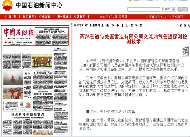 在公司与西安雷迪分公司的安排下,Jerry在“西北”地区的回访日程相当饱满,整个10月的后两周,先后走访了新疆、西安等地的多家油田、管道公司。